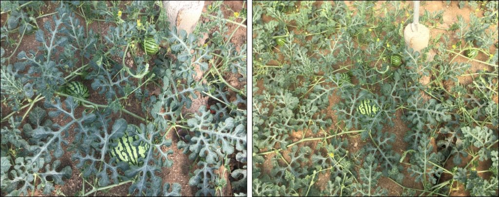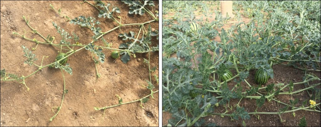 Watermelons treated with ROOT PROCUJI (an application of 20 L./ha.) and EDYFRUIT ROOT ENLARGEMENT (2 applications of 20 L./ha.).