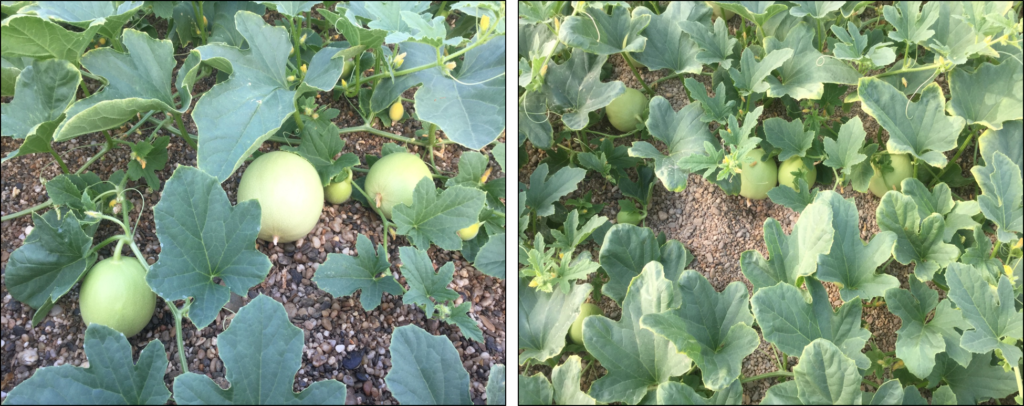 "Norte" melon already set, treated with EDYFRUIT ROOT ENLARGEMENT (10 L./ha with two applications) and COUPÉ REGENERATION Plus (an application of 60 L./ha.).