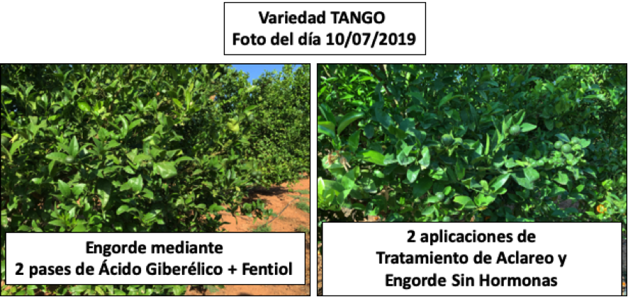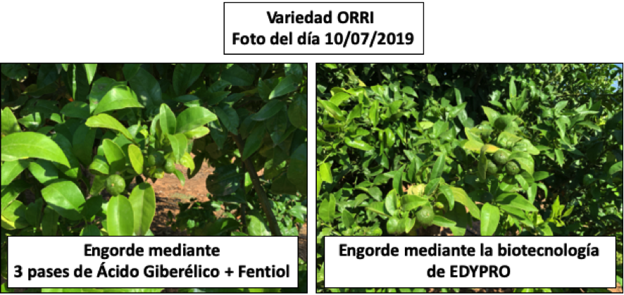 These comparative photos show the difference that can be achieved in the fattening of mandarin fruits from the Orri and Tango varieties when the products are applied EDYPRO biotechnological products.