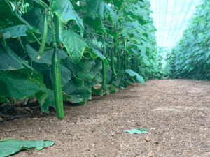 Los cultivos que más sembramos son sobre todo pepino y sandia, y también un poco de pimiento. Está en la zona de El Ejido en el paraje de Las Chozas. Es una buena zona para el cultivo porque es reconocida por ser una zona más fría. Y todos nuestros cultivos son bajo abrigo y bien ventilados.
