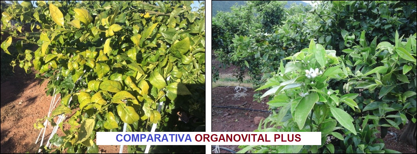 El efecto principal que ORGANOVITAL PLUS produce en los cultivos es una rápida regeneración vital de los mismos, estimulando el potente desarrollo foliar y radicular y mejorando su actividad.