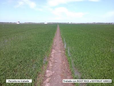 En las siguientes imágenes mostramos los resultados que hemos obtenido este año 2015 en las parcelas de arroz de Valencia mediante los productos biotecnológicos de EDYPRO.