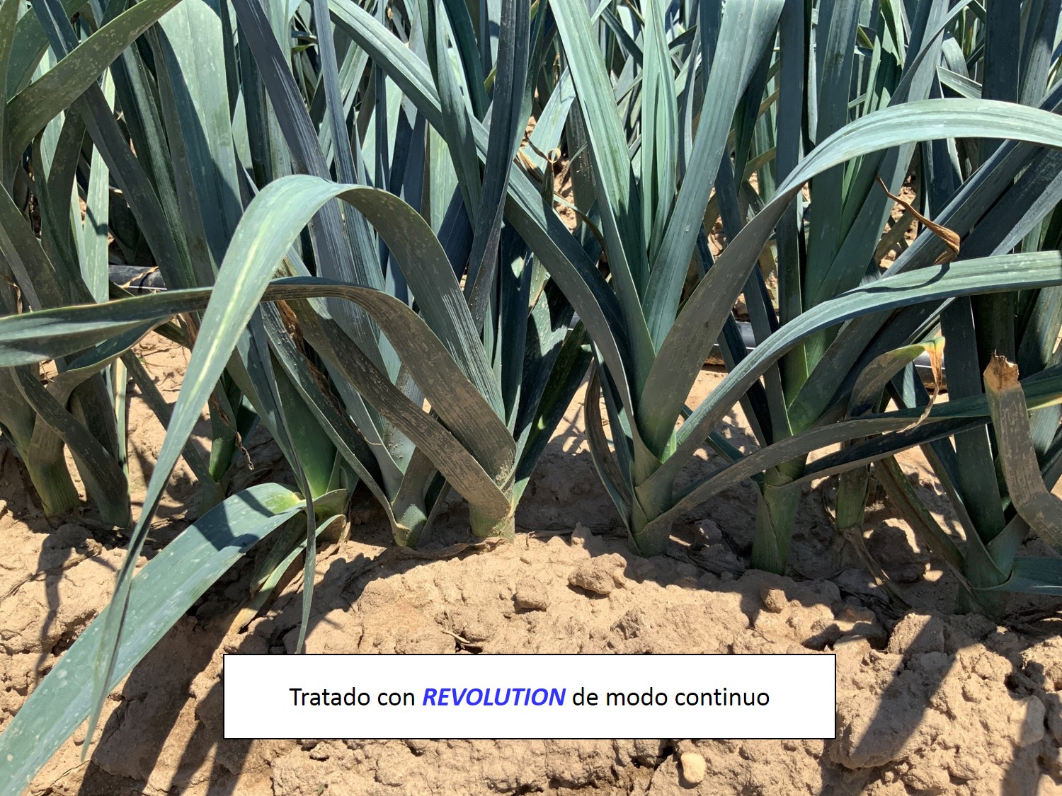 La aplicación continuada de REVOLUTION una vez a la semana desde el inicio del ciclo de cultivo permite mantener el cultivo en condiciones óptimas. En situaciones críticas se debe aumentar la frecuencia de las aplicaciones, pudiendo llegar a 3 aplicaciones por semana.