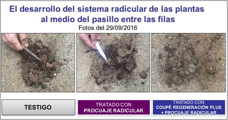 El potencial de desarrollo del sistema radicular en las plantas tratadas con COUPÉ REGENERACIÓN Plus es asombroso y es la base de una magnifica producción.