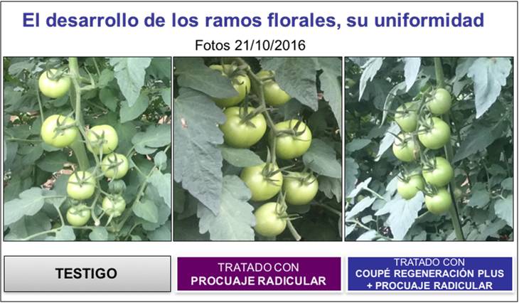Con el fin de documentar las mejoras de distintos factores productivos del cultivo de tomate estamos realizando una experiencia demostrativa en la zona de El Ejido (Almería) con la aplicación de COUPÉ REGENERACIÓN Plus y PROCUAJE RADICULAR.