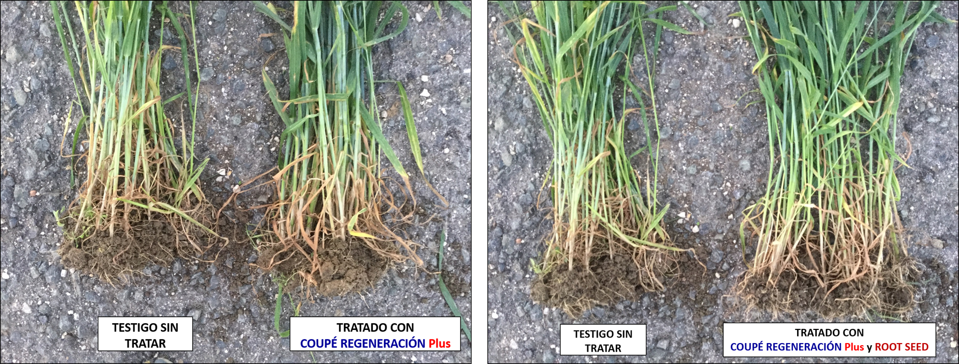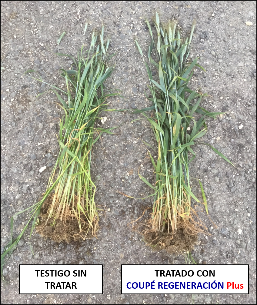 1. Las plantas tratadas con COUPÉ REGENERACIÓN Plus presentan un sistema radicular mejor desarrollado, con unas raíces más fuertes y largas.
