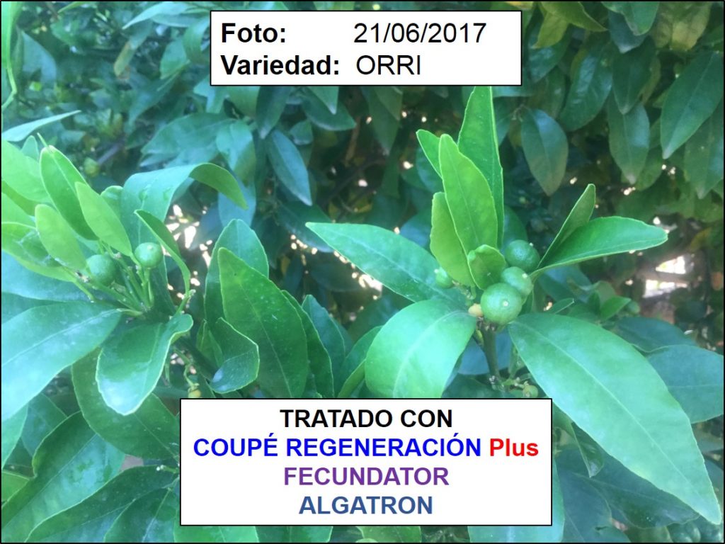 Además, al ser una tierra con bastante carbonato cálcico, hemos preparado el arbolado con aplicaciones de COUPÉ REGENERACIÓN Plus previo a los tratamientos de cuajado para que el árbol tenga una buena asimilación de los nutrientes del suelo y un mayor flujo de la savia.