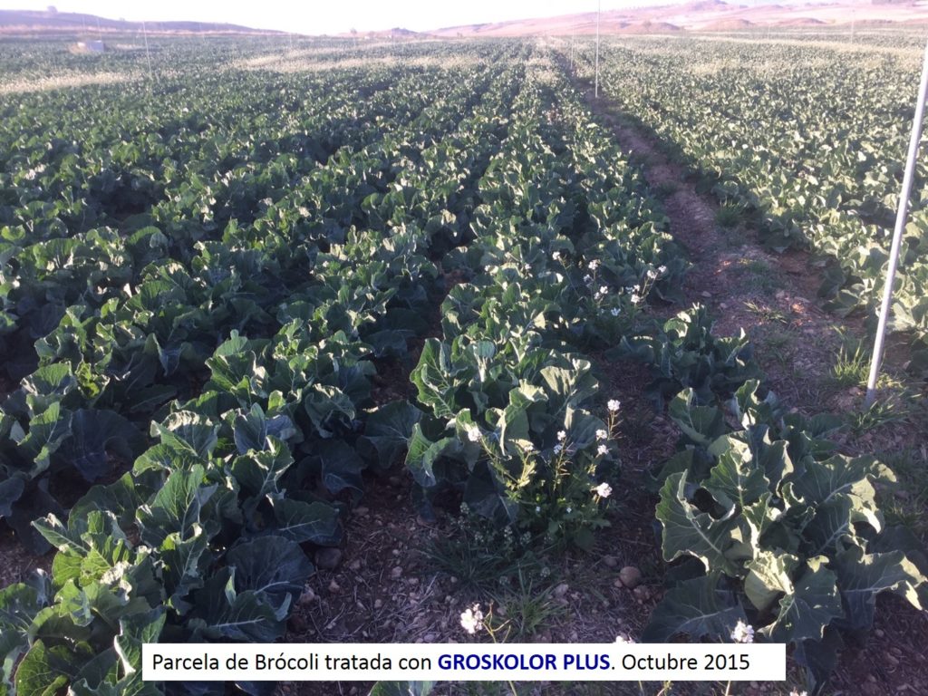 A continuación se muestran unas parcelas de brócoli y coliflor de la zona de Aragón y Navarra, que tenían una deficiencia de Calcio y Boro.