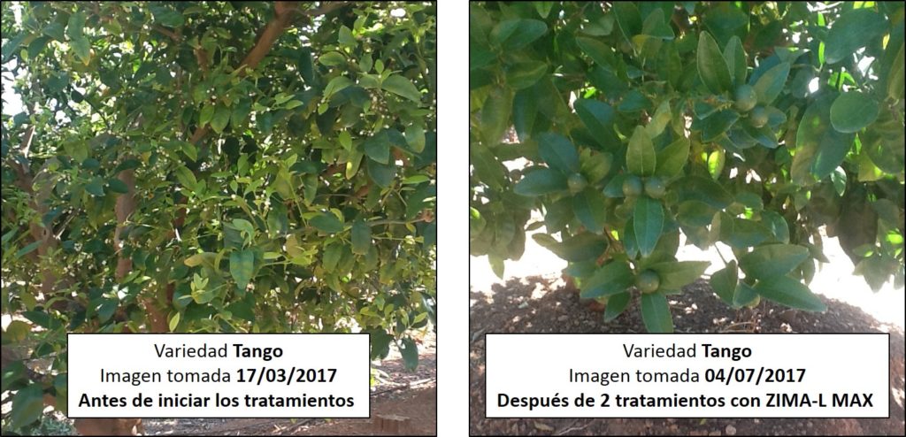 Asimismo, pueden valorar los cambios que se han producido en las hojas después de realizar los tratamientos biotecnológicos de EDYPRO incluso 2 aplicaciones de ZIMA-L MAX.