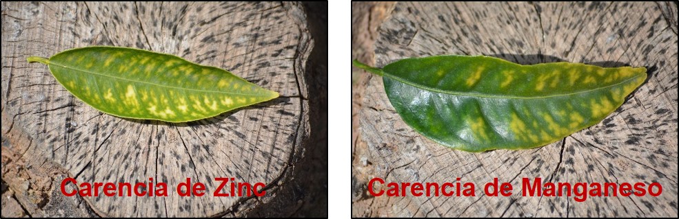 Siendo muy sensibles a déficit de Zinc y Manganeso, los cítricos lo manifiestan de siguiente forma: