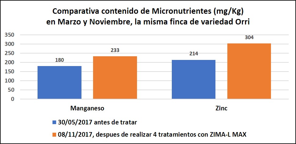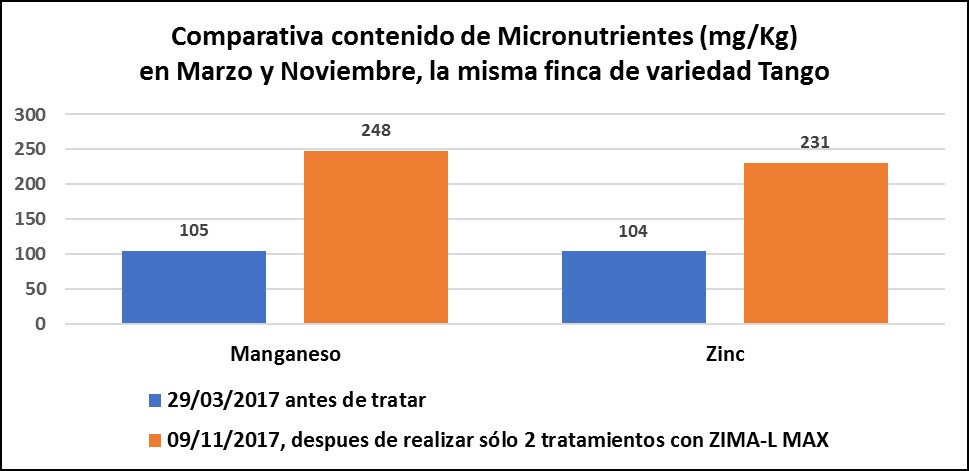 Ademas, para confirmar los exitosos resultados, hemos hecho una serie de análisis foliares antes de empezar los tratamientos con ZIMA-L MAX y después de realizar varios tratamientos y aquí presentamos los sorprendentes resultados.