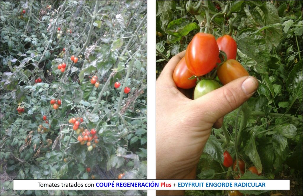 Con las aplicaciones de COUPÉ REGENERACIÓN Plus + EDYFRUT ENGORDE RADICULAR, además de solucionar el problema se ha obtenido una mejora en el tamaño de los frutos y en el comportamiento vegetativo de la planta.